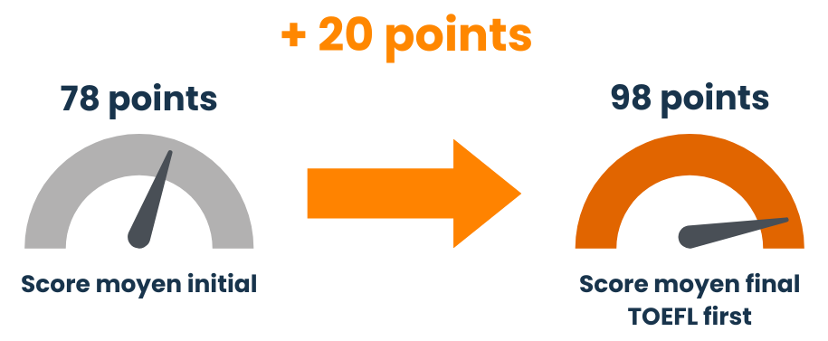 Grâce à votre préparation, vous vous présentez au test TOEFL et obtenez le score visé. Vous avez atteint votre objectif : notre engagement est tenu.